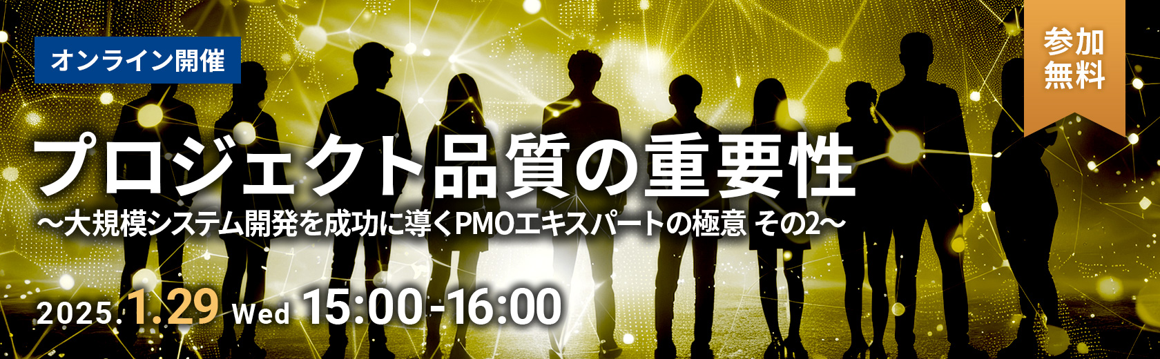 2024年7月30日(火)に開催した「プロジェクト品質」をテーマにしたセミナーでは、多くのお客様からご好評をいただいたことから、このたび2025年1月29日(水)に講師を新たにし、同テーマでのセミナーを開催いたします。